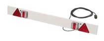 Rozsuwana aluminiowa listwa oświetleniowa do przyczepy wyposażona w zestaw wymaganych przepisami lamp żarowych lub LED, a także wtyczkę 7-pin i przewód dostosowany do indywidualnych wymagań pod względem: